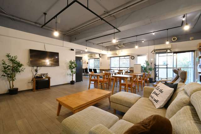 クラスハウス猪名寺は、大阪(梅田)から4駅、電車で14分のところにあるシェアハウスです。また、神戸にも尼崎で乗り換えて最短32分です。そして尼崎のJR猪名寺駅(いなでらえき)徒歩2分で通勤通学に便利な立地です。エントランスのオートロック付きの赤いドアを開けるとお洒落な廊下に出ます。1階のリビングは2人がけの席とカウンター席があり、ソファも2セットある広いお洒落なリビングです(テレビも2台)。また、サラウンドシステム付きの大画面テレビでくつろぎながら気の合う住人たちとの会話ができます。キッチンには新設したシステムキッチンが3つあり本格的な料理もつくれ、シーズンに合わせてパーティーができます。その他1階には男性用シャワールーム(5ブース)と洗濯室があります。2階は女性専用フロアとなっていて女性用シャワールームも2階にあります。女性用シャワーブースはミストサウナと足湯付きです!