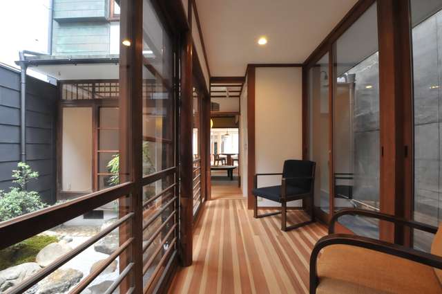 こちらの物件は22歳以上の社会人のみの受付となります。学生の方、申し訳ございません。また、長期(1年以上)の方のみの受付となります。京だんらん西陣千両ヶ辻は京町家をリノベーションしたシェアハウスです。シェア生活のライフスタイルをプランニングに反映し、「食と趣味」をテーマに潤沢な共用スペースを設けました。特徴はいわゆる”うなぎの寝床”の約110坪の敷地に、メインの生活拠点になる母屋(建物部分)と蔵を含めた延べ約80坪の大きな建物になり、蔵の背後には約37坪のお庭があります。【潤沢な共用部分】建物の約73.8%が共用部分で家のあちこちに寛げるスペースがあります。<約30mの土間が裏庭まで続く京町家をリノベーション><靴やクローゼットなどの収納力は十分すぎるほどです><水色の壁面が異彩を放つダイニングキッチン><オーダー製作の大型キッチンと、京北の木工屋さんが製作したナラの8人掛けテーブル&チェアが自慢><左官の洗い出しとかわいいタイルが印象的なお風呂><和の中庭を眺めながらホッと一息できる縁側>